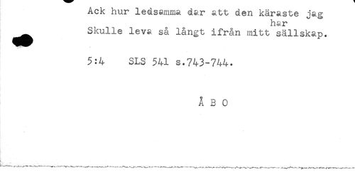 //// har //// ^^ Skulle leva så långt ifrån mitt sällskap. //// 5:4 SLS 541 s.743-744. //// ÅBO ////