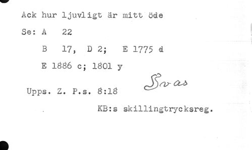 //// ACK nur j-juviigD ar oae //// Se: A 22 ^ //// * & //// B 17, D 2; E 1775 d //// E 1886 c; 1801 y //// Upps. Z. P.s. 8:18 ^ //// KB:s skillingtrycksreg. ////