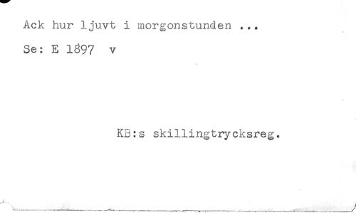 //// Ack hur ljuvt i morgonstunden ... //// * //// Se: E 1697 v //// < //// KB:s skillingtrycksreg. //// --^ ////