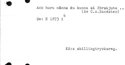 //// Ack huru nänns du kunna så förskjuta .., //// (Av C.A.Sandsten) //// 4 //// Se: E 1873 i //// ! //// KB:s skillingtrycksreg. ////