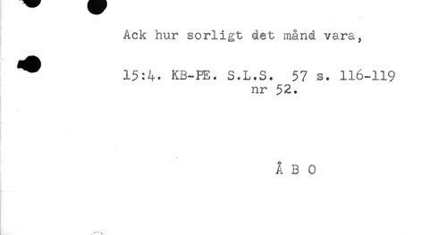//// Ack hur sorligt det månd vara. //// t //// ^ 15:4. KB-PE. S.L.S. 57 s. 116-119 //// nr 52. //// . //// ÅBO ////