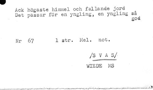 //// Ack högaste himmel ocn iaij-a^ue ju.m //// Det passar för en yngling, en yngling sa //// god //// Nr 67 1 str. Mel. not. //// /SVA S/ //// WIE DE MS ////