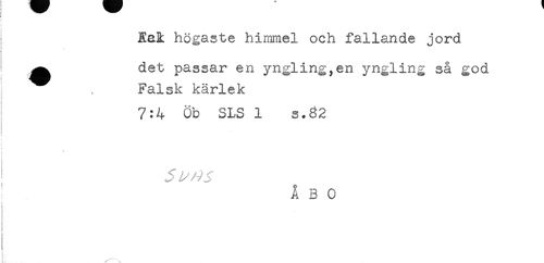 //// )': _ //// Kai högaste himmel och fallande jord //// ^^ det passar en yngling,en yngling så god //// Falsk kärlek //// 7:4 Öb SLS 1 s.82 //// * //// v //// ÅBO ////