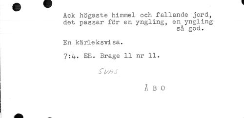 //// En kärleksvisa. //// 7:4. EE. Brage 11 nr 11. //// ÅBO ////