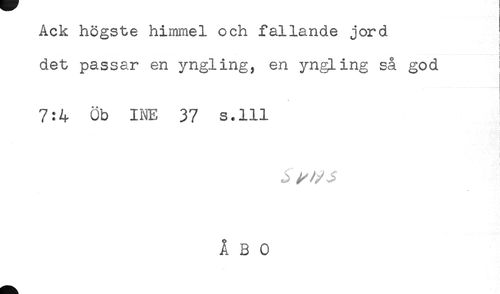 //// ACK högste himmel och i allande jord //// i //// i //// det passar en yngling, en yngling så god ! //// 7:4 öb INE 37 s.lll //// - //// < //// ' j ////