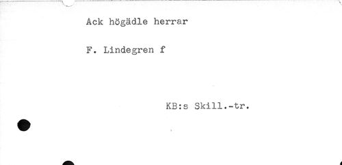 //// Ack högädle herrar //// F. Lindegren f //// KB:s Skill.-tr. ////