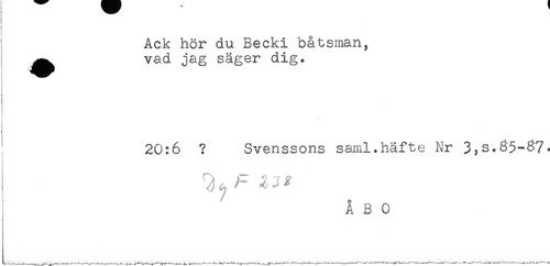 //// Ack hör du Becki båtsman, //// ^^ vad jag säger dig. //// i //// ) % //// 1 //// { //// 20:6 ? Svenssons saml.häfte Nr 3,s.85-37- //// A B 0 ////