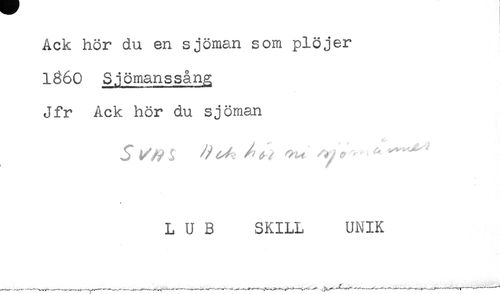 //// Ack hör du en sjöman som plöjer //// 1860 Sjömanssång //// Jfr Ack hör du sjöman //// L U B SKILL UNIK ////