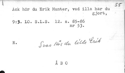 //// Ack hör du Erik Munter, vad illa har du //// gjort, //// 9:3. LO. S.L.S. 12. s. ^5-^6 //// nr 53* //// < ////