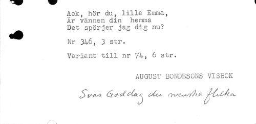 //// Nr 346, 3 str. //// Variant till nr 74, 6 str. //// AUGUST BONDESONS VISBOK ////