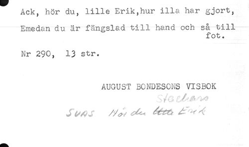 //// * *" ) **" * - ?----- ' //// Emedan du är fängslad till hand och så till //// fot. //// Nr 290, 13 str. //// AUGUST BONDESONS VISBOK ////