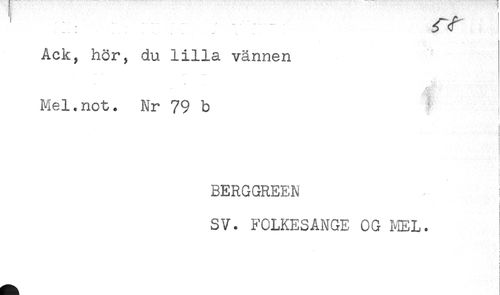 //// - --- * - //// Ack, hör, du lilla vännen //// Mel.not. Nr 79 b //// i //// t //// BERGGREEN //// SV. FOLKESANGE OG MEL. ////