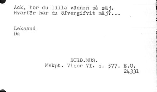 //// Hvarför har du öfvergifvit mäj?... //// i //// ) //// Leksand //// Da } //// F //// = //// NORD.MUS. ! //// Mskpt. Visor VI. s. 577. E.U. //// 24331 //// j ////