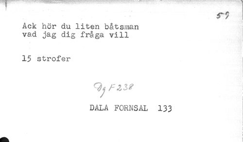 //// Ack hör du liten båtsman //// vad jag dig fråga vill //// 15 strofer //// i //// i //// DALA FORNSAL 133 //// p //// t //// t //// i //// i ////