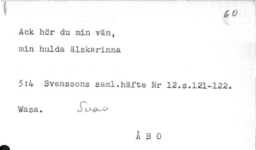 //// - - * * //// Ack hör du min vän, //// min hulda älskarinna //// 5:4 Svenssons saml.häfte Nr 12.s.121-122. //// Wasa. Jt^^o //// i //// t //// < //// t //// ÅBO ! //// t //// I ////