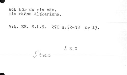 //// Ack hör du min vän. //// min sköna älskarinna. //// i //// i //// 5:4. EE. S.L.S. 270 s.32-33 nr 13. //// ÅBO ////