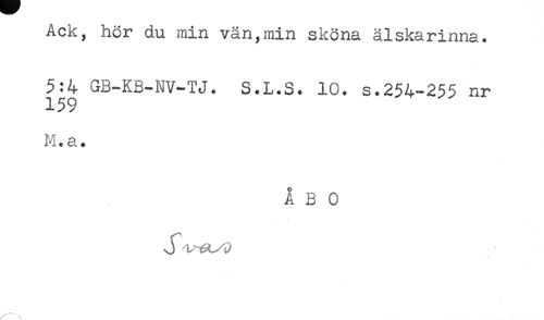 //// nor au mm van,mm sköna älskarinna. //// 5:4 GB-KB-NV-TJ. S.L.S. 10. s.254-255 nr //// 159 //// M.a. //// ÅBO //// / \ ////