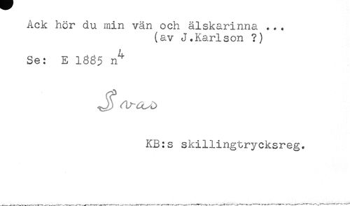 //// Ack hör du min vän och älskarinna ... //// (av J.Karlson ?) //// Se: E 183$ n^ //// KB:s skillingtrycksreg. ////