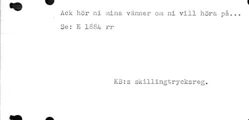 //// Ack hor ni mina vänner om ni vill höra pä... //// Se: E 1864 rr //// KB:s skillingtrycksreg. ////