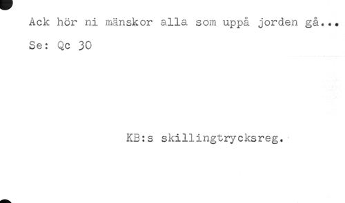 //// Ack hor ni manskor alla som uppa jorden ga... //// Se: Qc 30 //// KB:s skillingtrycksreg. ////