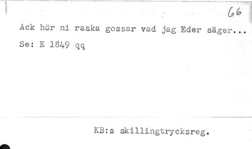 //// ' t Zy //// Ack hör ni raska gossar vad jag Eder säger... //// Se: E 1849 qq //// KB:s skillingtrycksreg. ////