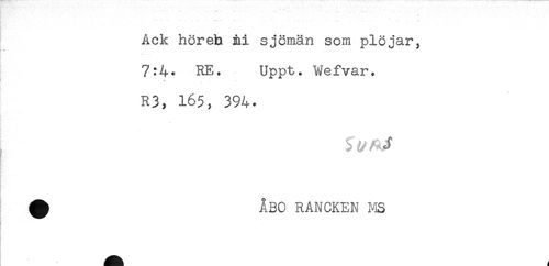 //// ! //// Ack höreh mi sjömän som plöjar, //// 7:4. RE. Uppt. Wefvar. //// v - //// R3, 165, 394. //// . //// ^ ÅBO RANCKEN MS //// * ////