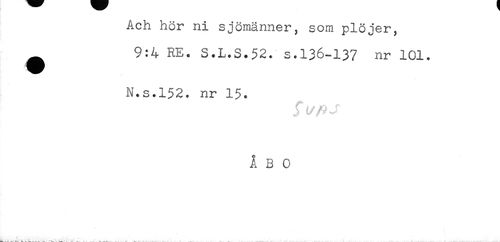 //// Acn hor ni sjömänner, som plöjer, //// ^ 9:4 RE. S.L.S.52. s.136-137 nr 101. //// N.s.152. nr 15. //// f //// ÅBO //// * ////