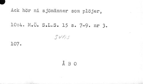 //// Ack hör ni sjömänner som plöjer, //// 10:4* M.Ö. S.L.S. 15 s. 7-9. nr 3. //// 107. //// ÅBO ////