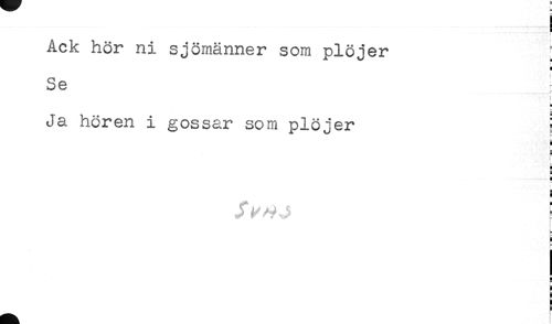 //// Ack hör ni sjömänner som plöjer //// H //// Se //// r //// ! //// H //// Ja hören i gossar som plöjer ! //// ä //// H //// 5 //// H //// ^ //// ä //// F ////