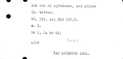 //// iiui- iij. sjömänner, som plöjer //// Öb. Wefvar. //// ^ R6, 191, 44; SLS 125,6. //// s. 1. //// Nr 1, (= Nr 64) //// 4073 //// ÅBO SJÖBERGS SAML. ////