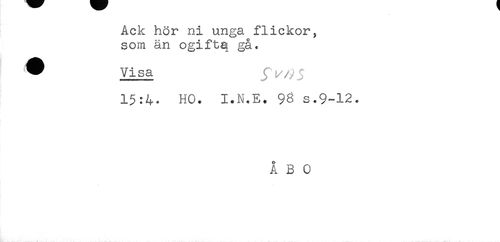 //// Ack hör ni unga flickor, //// som än ogiftq gå. //// ^ Visa y i/// ^ //// 15:4- HO. I.N.E. 98 s.9-12. //// ÅBO ////
