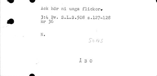 //// Ack hör ni unga flickorv //// ^ 3*4^Bv. S.L.S.508 s.127-123 //// / //// N. ////