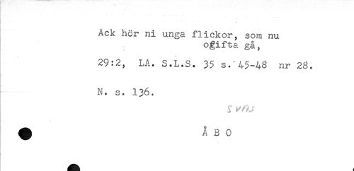 //// Ack hör ni unga flickor, som nu //// ogifta gå, //// .i- //// 29:2, LA. S.L.S. 35 s. 45-48 nr 28. //// N. s. 136. ////