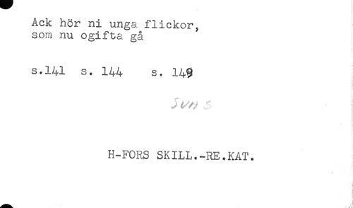 //// Ack hör ni unga flickor, //// som nu ogifta gå //// s.141 s. 144 s. 149 //// i //// ! //// < //// H-FORS SKILL.-RE.KAT. //// i //// i //// ! //// i ////