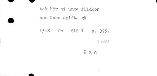 //// Ack hör ni unga flickor //// ^^ som ännu ogifta gå //// 15:8 öb SLS 1 s. 395- //// ÅBO ////