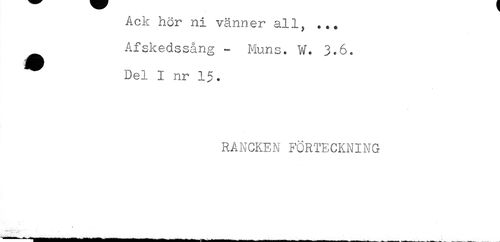 //// iAUA ilj. VctlHi^I' ... //// Afskedssång - Muns. W. 3.6. //// Del I nr 15. //// RANCKEN FÖRTECKNING //// t //// -^ ////