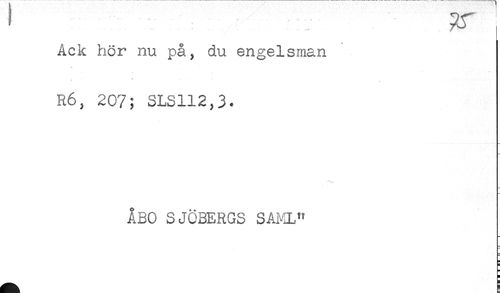 //// Ack hör nu på, du engelsman //// R6, 207; SLS112,3. //// ÅBO SJÖBERGS SAML" //// 5 //// H //// < ////