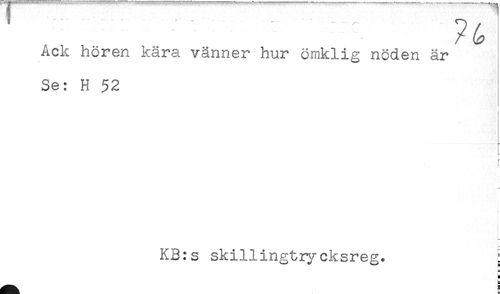//// Ack hören kära vänner hur ömklig nöden är //// Se: H 52 //// ! //// L //// i-* //// I //// ! //// ! //// i //// ) //// t //// - //// KB:s skillingt^cksreg. ; ////