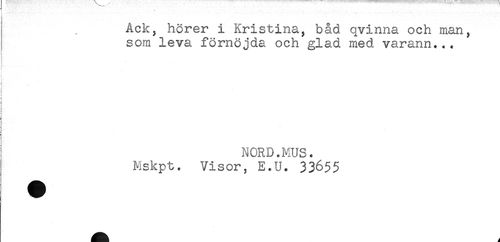 //// Ack, hörer i Kristina, båd qvinna och man, //// ) som leva förnöjda och glad med varann... //// i //// : //// t //// j //// ! //// ) //// ? //// j //// < //// NORD.MUS. //// Mskpt. Visor, E.U. 33655 ////
