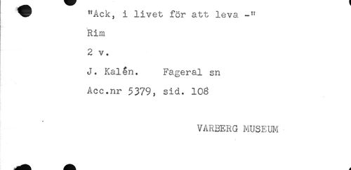 //// ^ ** i -A--A- v ^ v -t. ^ ^ -A-^ v ^ - //// Rim //// 2 v. //// J. Kålen. Fageral sn //// Acc.nr 5379, sid. 106 //// * //// VARBERG MUSEUM ////