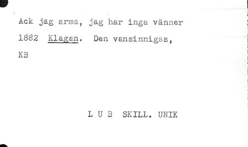 //// Ack jag arma, jag har inga vänner ; //// I //// 1832 Klagan. Den vansinnigas, ! //// ! //// KB I //// i //// ! //// t //// L U B SKILL. UNIK ////