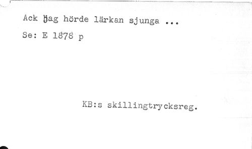 //// Ack Rag hörde lärkan sjunga ... //// Se: E 137g p //// KB:s skillingtrycksreg. ////