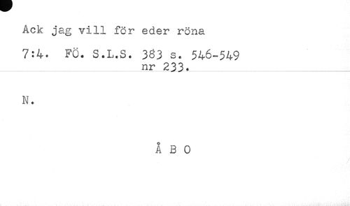 //// Ack jag vill för eder röna //// 7:4. Fö. S.L.S. 363 s. 546-549 //// __nr 233.__ //// N. //// ÅBO ////