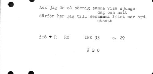 //// ACK jag ar sä sömnig samma visa sjunga //// dag och natt //// därför har jag till densamma litet mer ord //// utsatt //// 5:6 + R RC INE 33 s. 29 //// A B 0 //// t ////