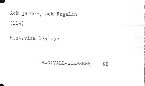 //// s //// Ack jämmer, ack ängslan ; //// r //// (119) ' //// - //// H //// * - //// B //// ! //// Hist.visa 1791-92 - //// L //// ! //// H //// i //// 5 //// ! //// t //// H-CAVALL-STEPHENS KB } //// E //// C ////
