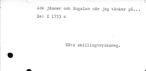 //// Ack jämmer och ängslan när jag tänker på... //// Se: Z 1753 a //// < //// KB:s skillingtrycksreg. ////