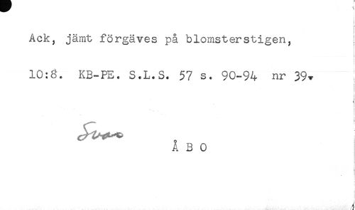 //// i //// r //// Ack, jämt förgäves på blomsterstigen, j //// t //// 10:8. KB-PE. S.L.S. 57 s. 90-94 nr 39* //// . //// i //// - //// - //// - //// ÅBO //// i //// ! //// t //// < //// f //// I ////