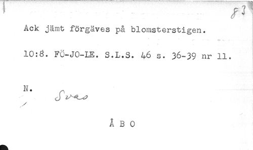 //// Ack jämt förgäves på blomsterstigen. //// 10:8. FÖ-JO-LE. S.L.S. 46 s. 36-39 nr 11. //// I //// N. ^ //// J ////