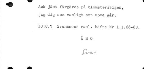 //// - janro iorgaves pa Oiomsterstigen, //// jag dig som vanligt att mötq går. //// 10:8.? Svenssons saml. häfte Nr l.s.86-88. //// ÅBO //// J^L^ 3 ////