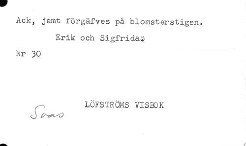 //// Ack, jemt förgäfves på blomsterstigen. //// Erik och Sigfridaä //// Nr 30 //// LÖFSTRÖMS VISBOK ////